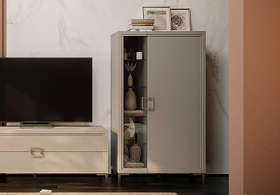 Шкаф Дольче со стеклянными полками (4 шт.) и полками ЛДСП Кашемир серый